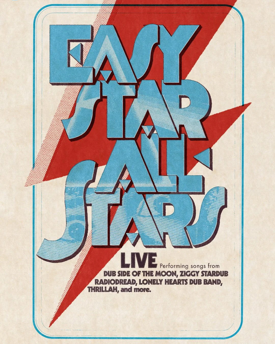 The group is best loved for a series of epic tribute recordings, including Dub Side Of The Moon, Radiodread, Easy Star’s Lonely Hearts Dub Band and Easy Star’s Thrillah. Most recently, they released Ziggy Stardub, a complete reggae re-imagining of David Bowie’s The Rise and Fall of Ziggy Stardust and The Spiders from Mars album with guests include Macy Gray, Maxi Priest, Steel Pulse, Fishbone, Alex Lifeson (Rush), Vernon Reid (Living Colour) and more.